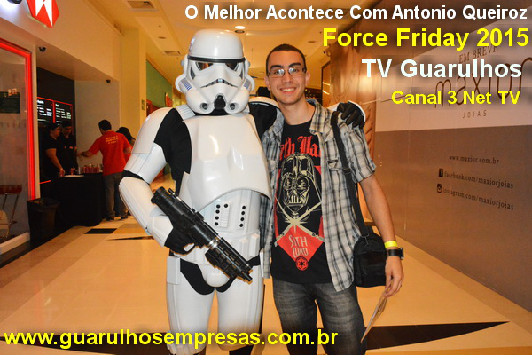 E a equipe do programa “O Melhor Acontece com Antonio Queiroz” estava lá para fazer uma boa cobertura para mostrar o que acontece na cidade de Guarulhos, não só na cidade, no mundo também estava acontecendo tudo simultaneamente em 15 cidades de 12 países foi apresentado os novos produtos do novo filme “STAR WARS – Episódio VII: O Despertar da Força”.