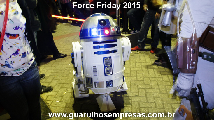 E nós vimos um droíde igualzinho dos filmes, uma réplica do R2-D2 que estava muito “radiante” andando entre nós e fãs. E isso foi só o começo tinha os guardas Stormtrooper, Darth Vader, Cavaleiros Jedi´s (confiram as fotos abaixo). Todos estavam ansiosos para conhecer e já poder fazer as primeiras compras dessa nova coleção que vai estar presente no episódio VII, que tem estreia prevista para 17 de Dezembro de 2015.